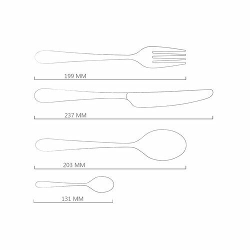 | В набор входит | 6 столовых ножей, 6 столовых вилок, 6 столовых ложек, 6 чайных ложек |