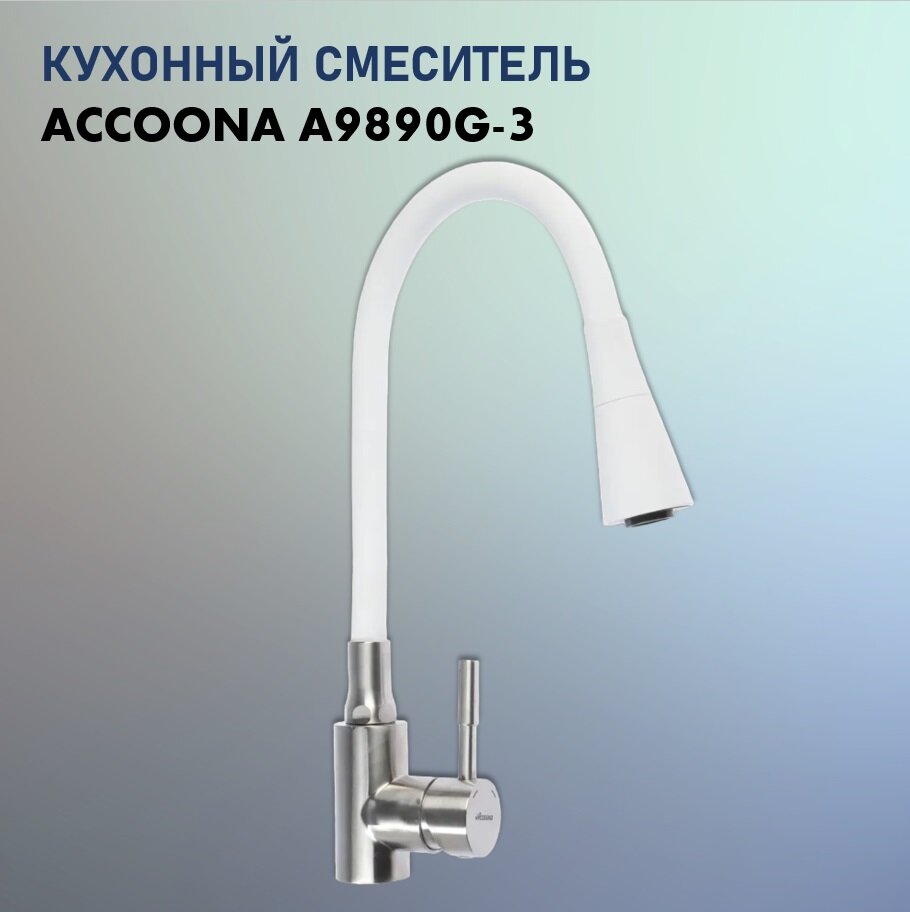 Смеситель Accoona A9890G-3, для кухни, однорычажный, картридж 35мм, силиконовый излив, белый