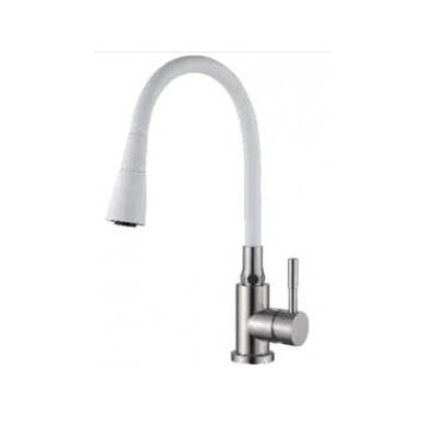 Смеситель кухня силиконовый излив двухрежимный (35) нержавеющая сталь Белый+Нерж Accoona A9890G-3