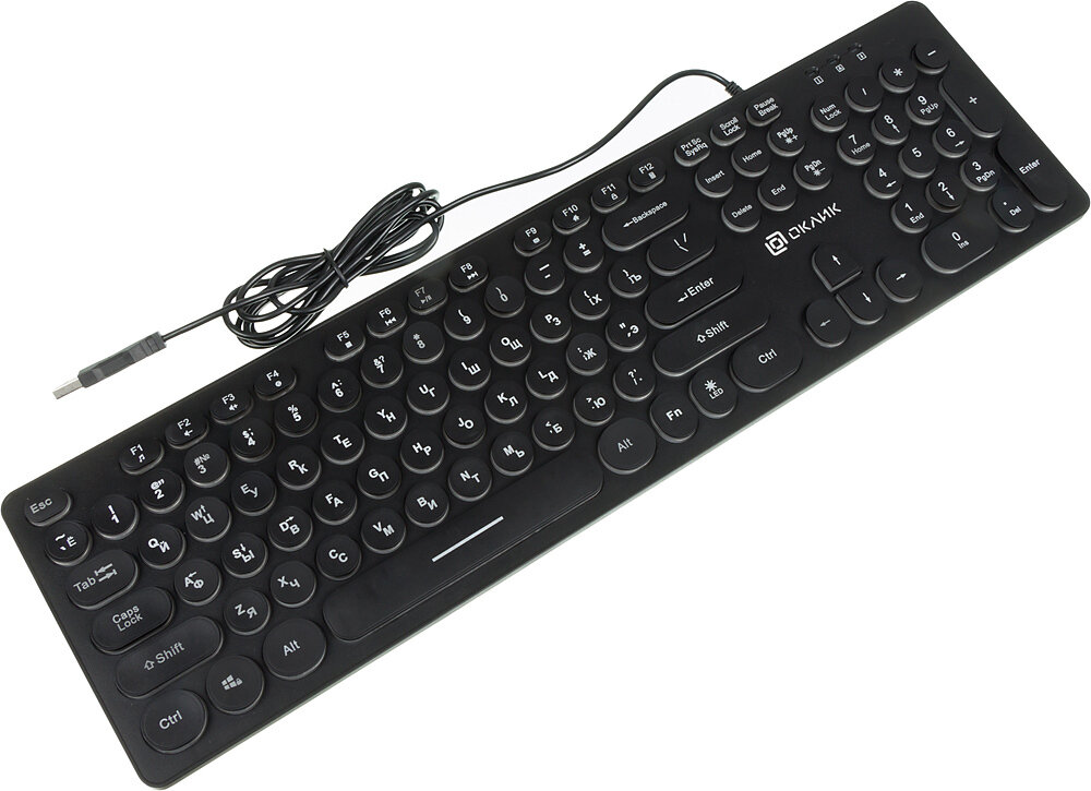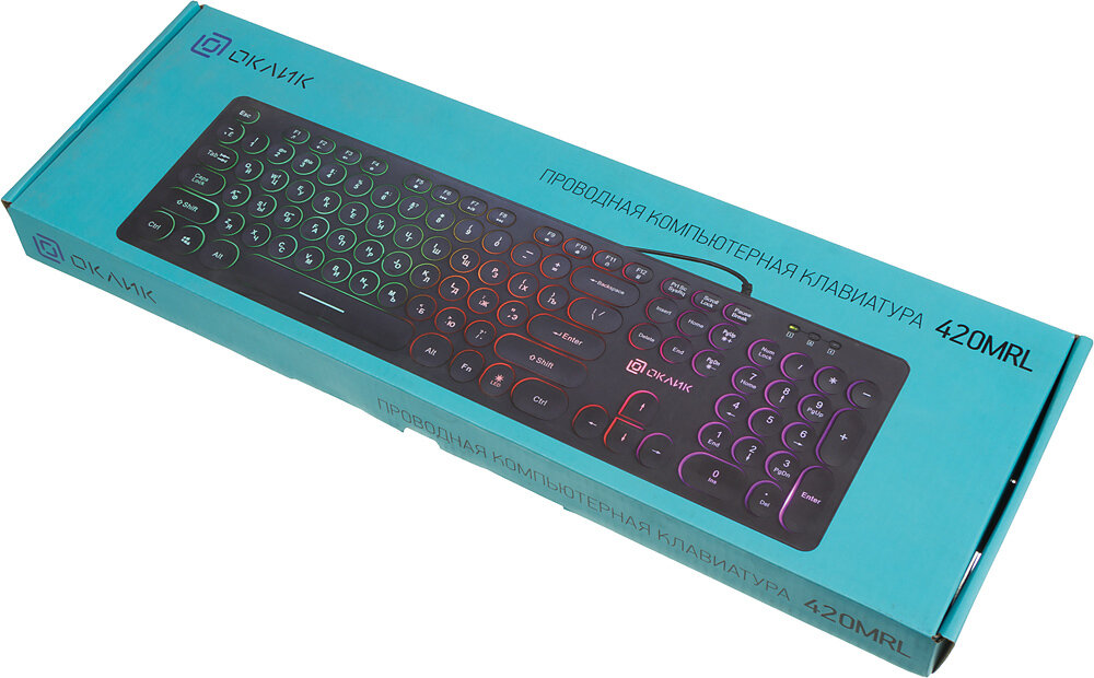Клавиатура Оклик 420MRL черный USB slim Multimedia LED интересное: