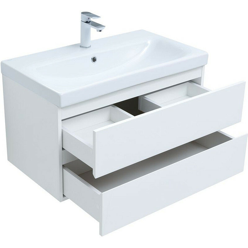 Тумба с раковиной Aquanet Беркли 80 белый глянец (2 ящика) 00302351