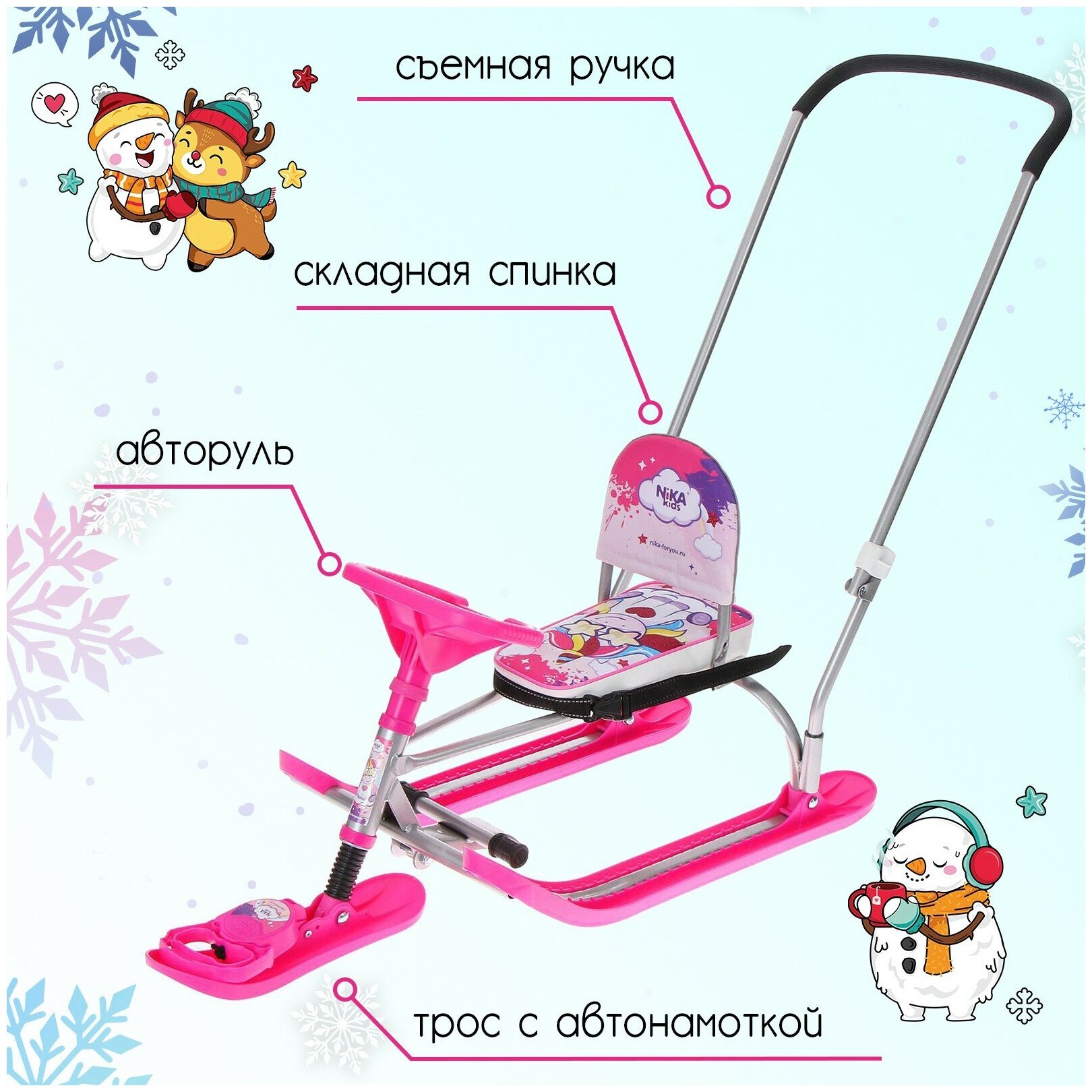 Снегокат Nika Kids TWINY 2 «Единорог», TW2-M/EP, с родительской ручкой, со спинкой и ремнём безопасности, цвет розовый, серый