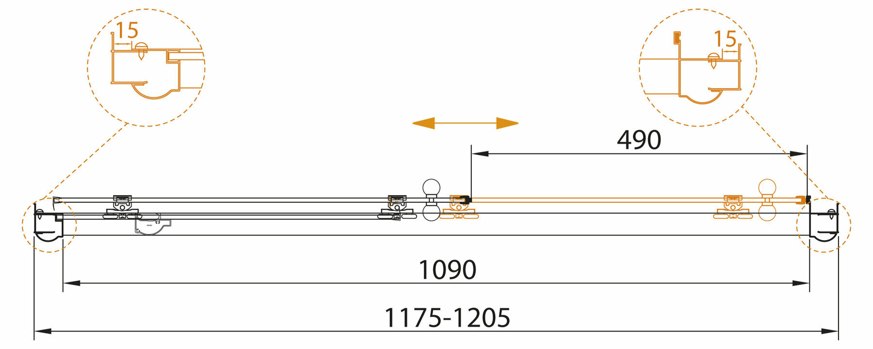 Душевая дверь CEZARES GIUBILEO (1175-1205х1950) BF-1-120-C-Br стекло прозрачное, профиль бронза