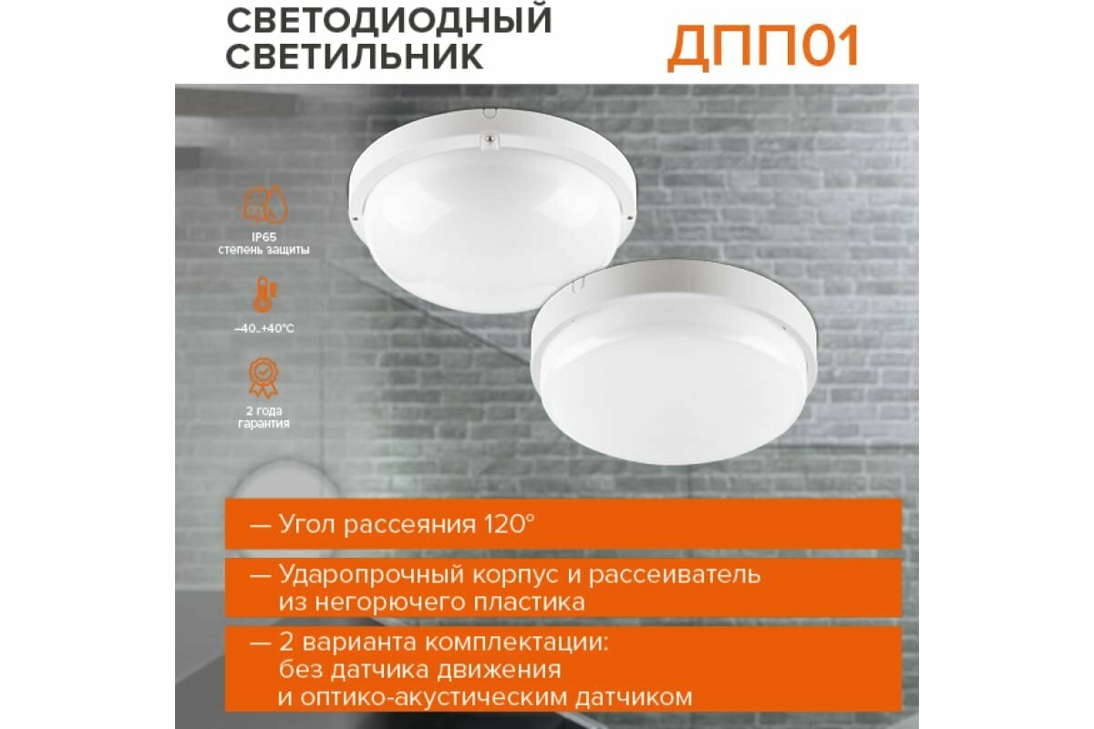 СохранитьСветильник светодиодный накладной Wolta ЖКХ IP65 Круг 18W(1620lm) 4000K 4K 224х84 ДПП01-18-001-4К интересное: