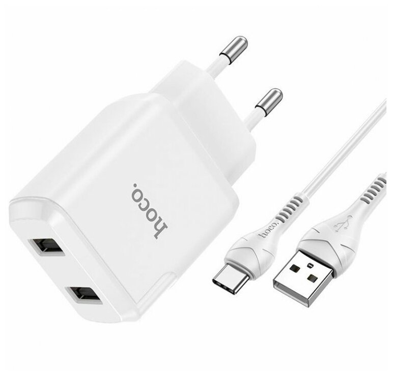 СЗУ, 2 USB 2.1A 10.5W (N7), HOCO, Type-C, Умная зарядка, белый