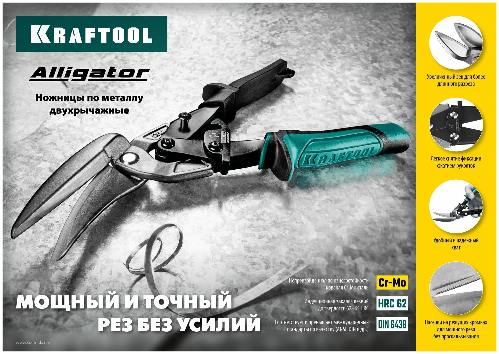 KRAFTOOL Alligator Правые усиленные ножницы по металлу с выносом, 250 мм