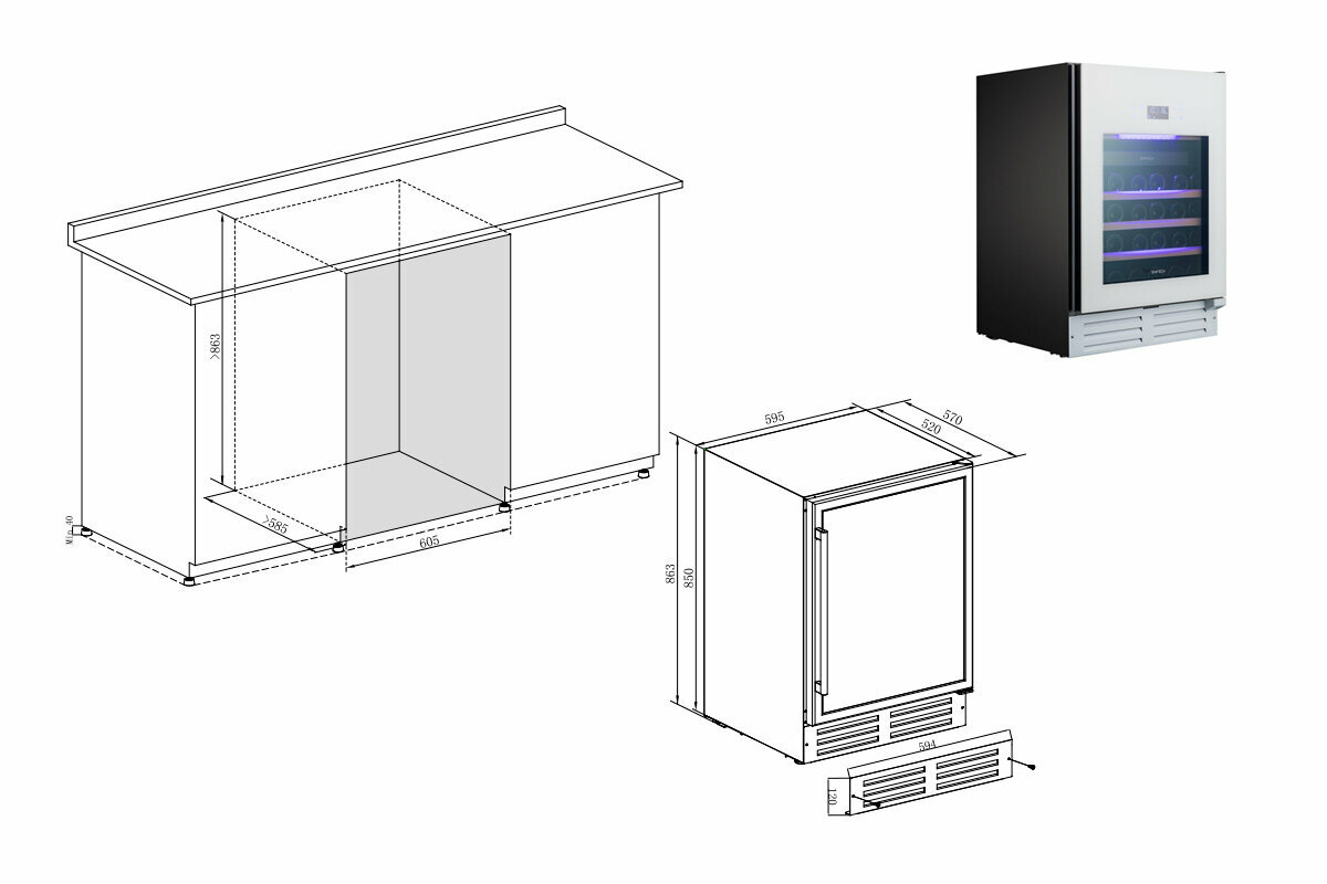 Встраиваемый винный шкаф на 46 бутылок Temptech Elegance EX60DRW белый