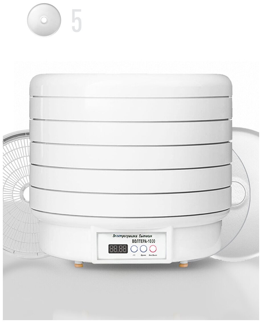 Сушилка ВолТера 1000 Люкс (с таймером и электронным блоком управления, 4 поддона для пастилы), белый