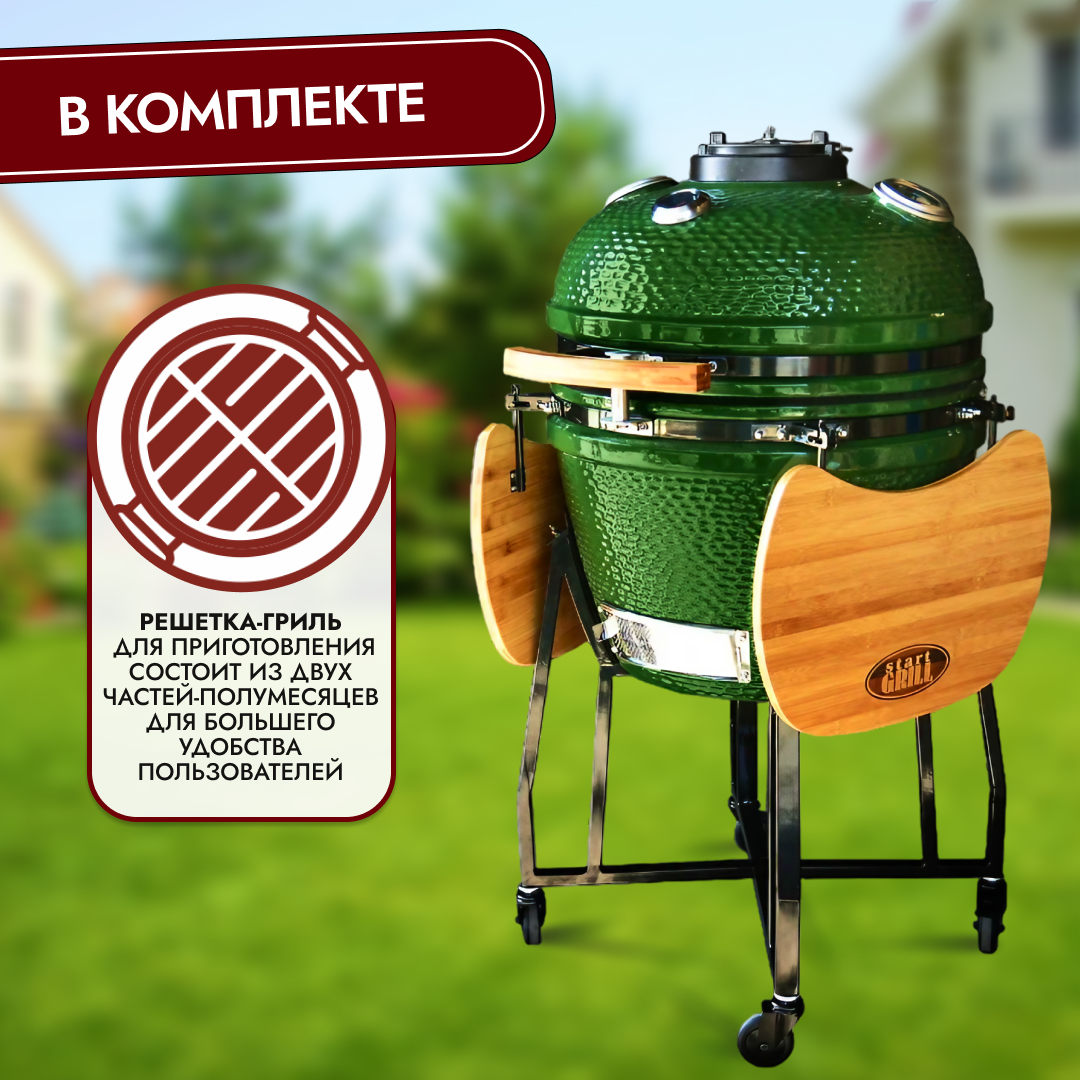 Керамический гриль-барбекю с окошком Start Grill 22 дюйма/58 см (зеленый) интересное:
