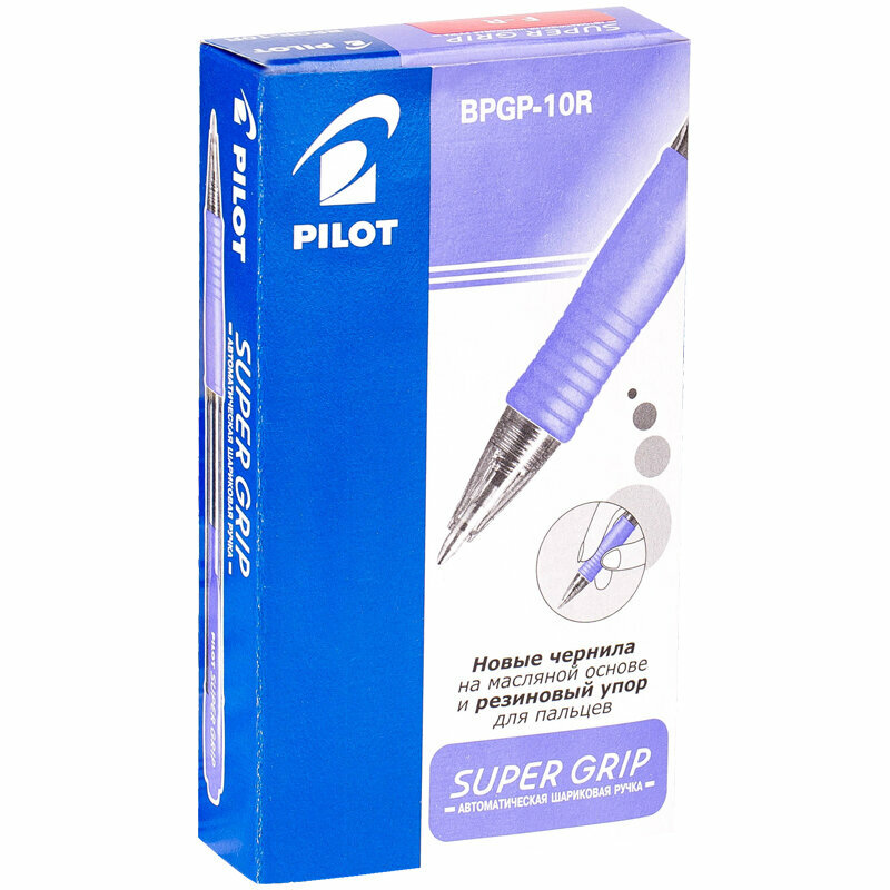 Ручка шариковая автоматическая Pilot "Super Grip" красная, 0,7мм, красный грип, 12 шт. в упаковке