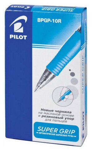 Ручка шариковая масляная автоматическая с грипом PILOT Super Grip, синяя, узел 0,7 мм, линия письма 0,32 мм, BPGP-10R интересное: