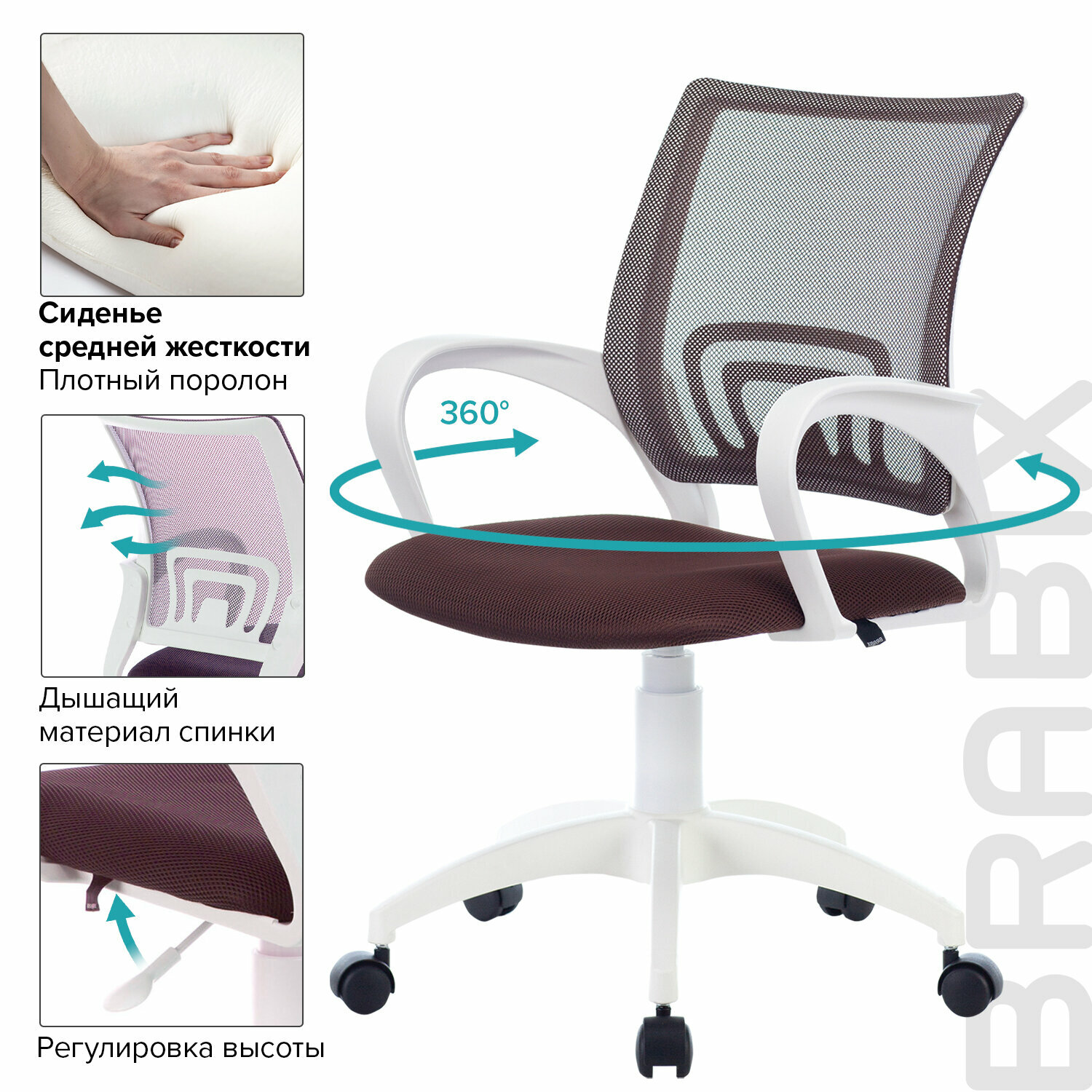 Кресло офисное Brabix "Fly MG-396W", с подлокотниками, пластик белый, сетка, коричневое, 532398, MG-396W_532398