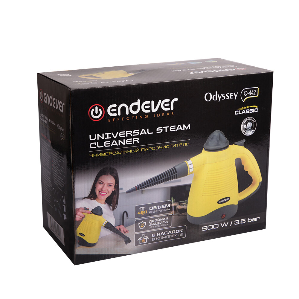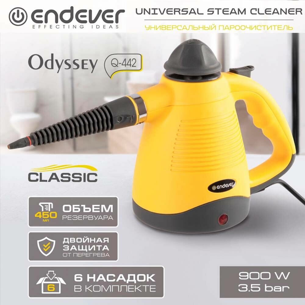 Пароочиститель для дома универсальный Endever Odyssey Q-442 / 28 г/мин / 900 Вт / 3,5 бар / шнур 2 метра