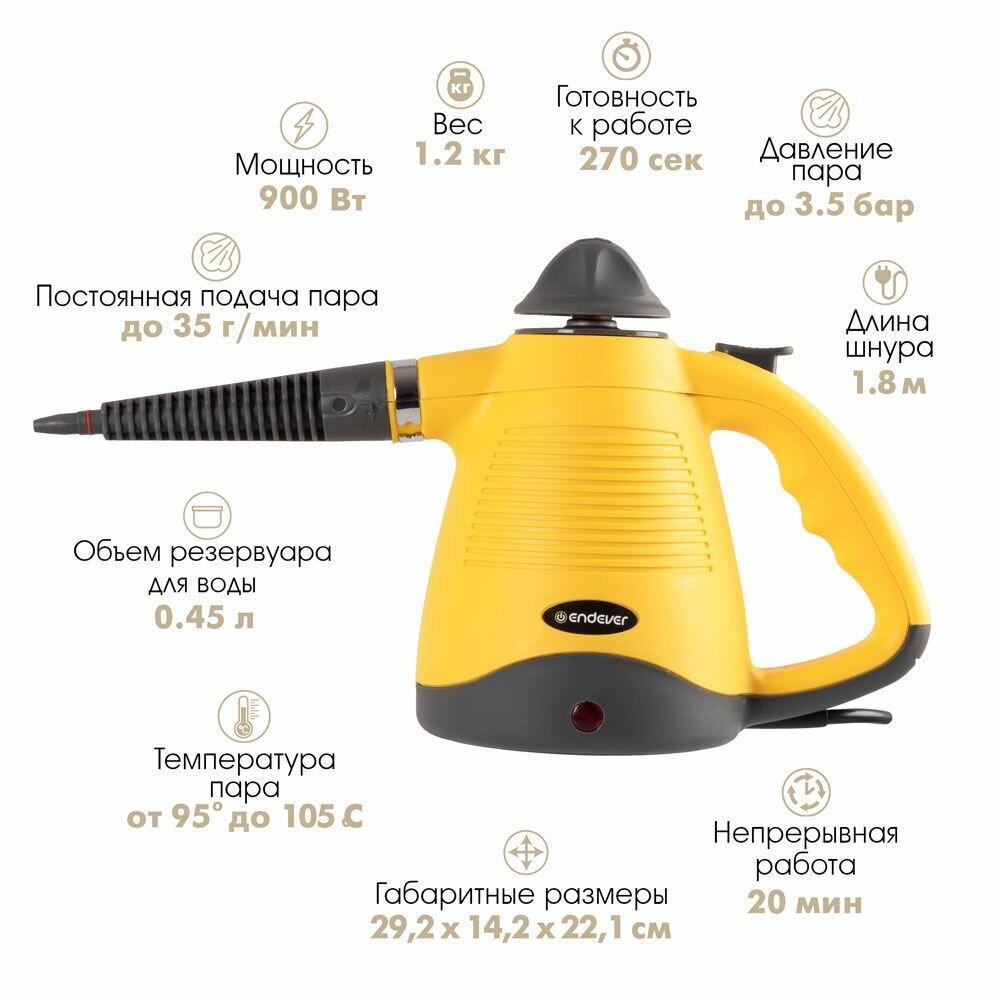 Пароочиститель для дома универсальный Endever Q-443 / 900 Вт / 3,5 бар