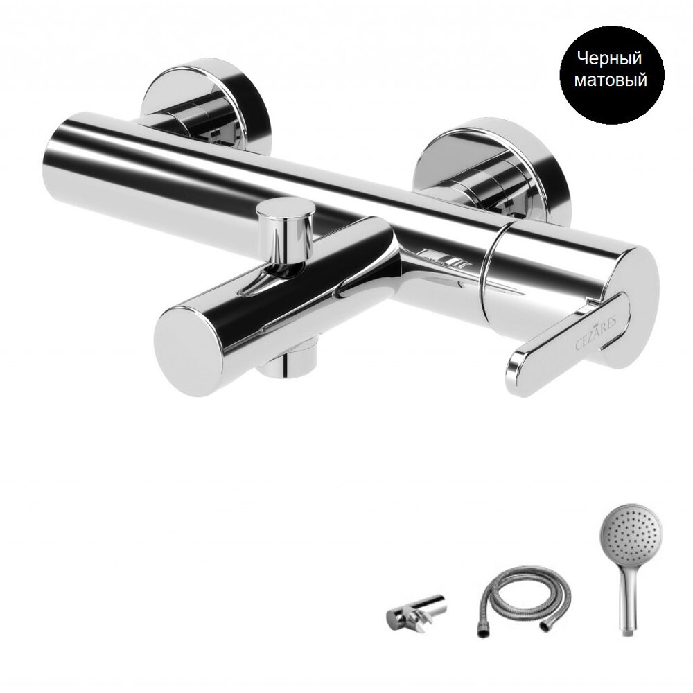 Смеситель для ванны и душа Cezares LEAF-VD-NOP с душевым гарнитуром, черный матовый
