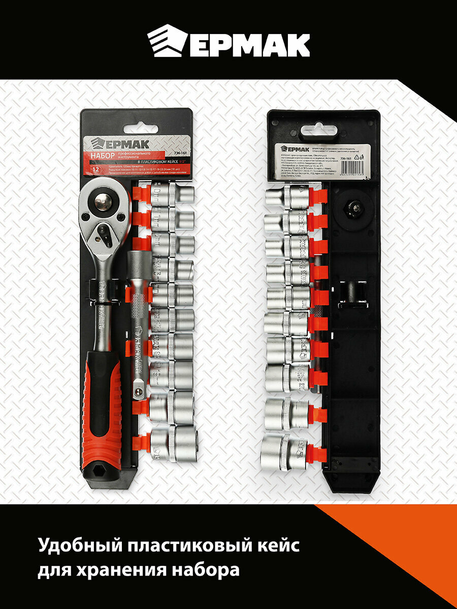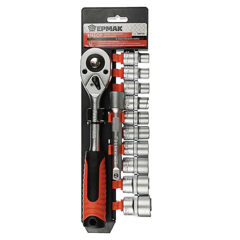 Купить Ермак Набор профессионального инструмента 12 предм., 1/2, головки, удлинитель и трещотка 736-161