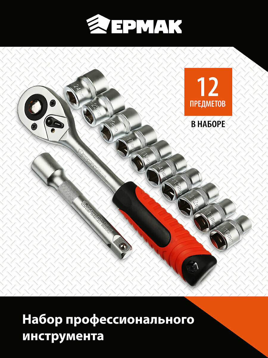Ермак Набор профессионального инструмента, 12 предм., 1/2" (головки, удлинитель и трещотка)