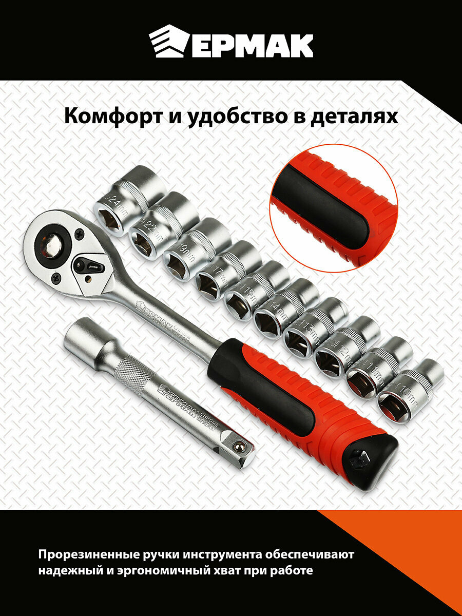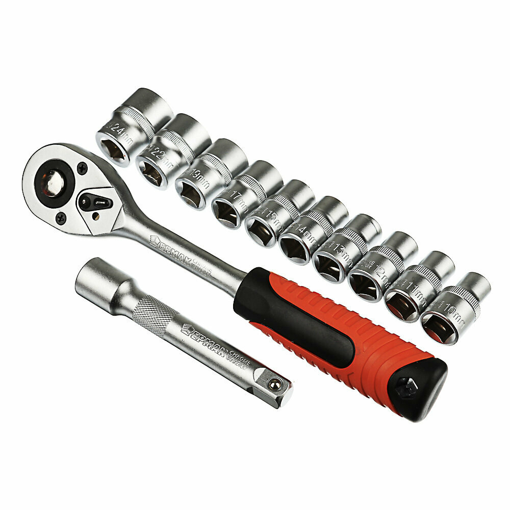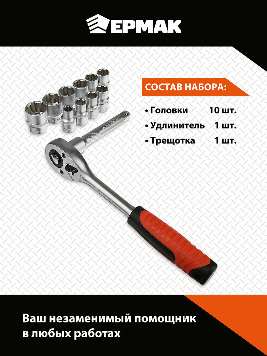 Набор торцевых головок и трещотка 12 предметов, 1/2" для автомобиля / для дома / для дачи Ермак