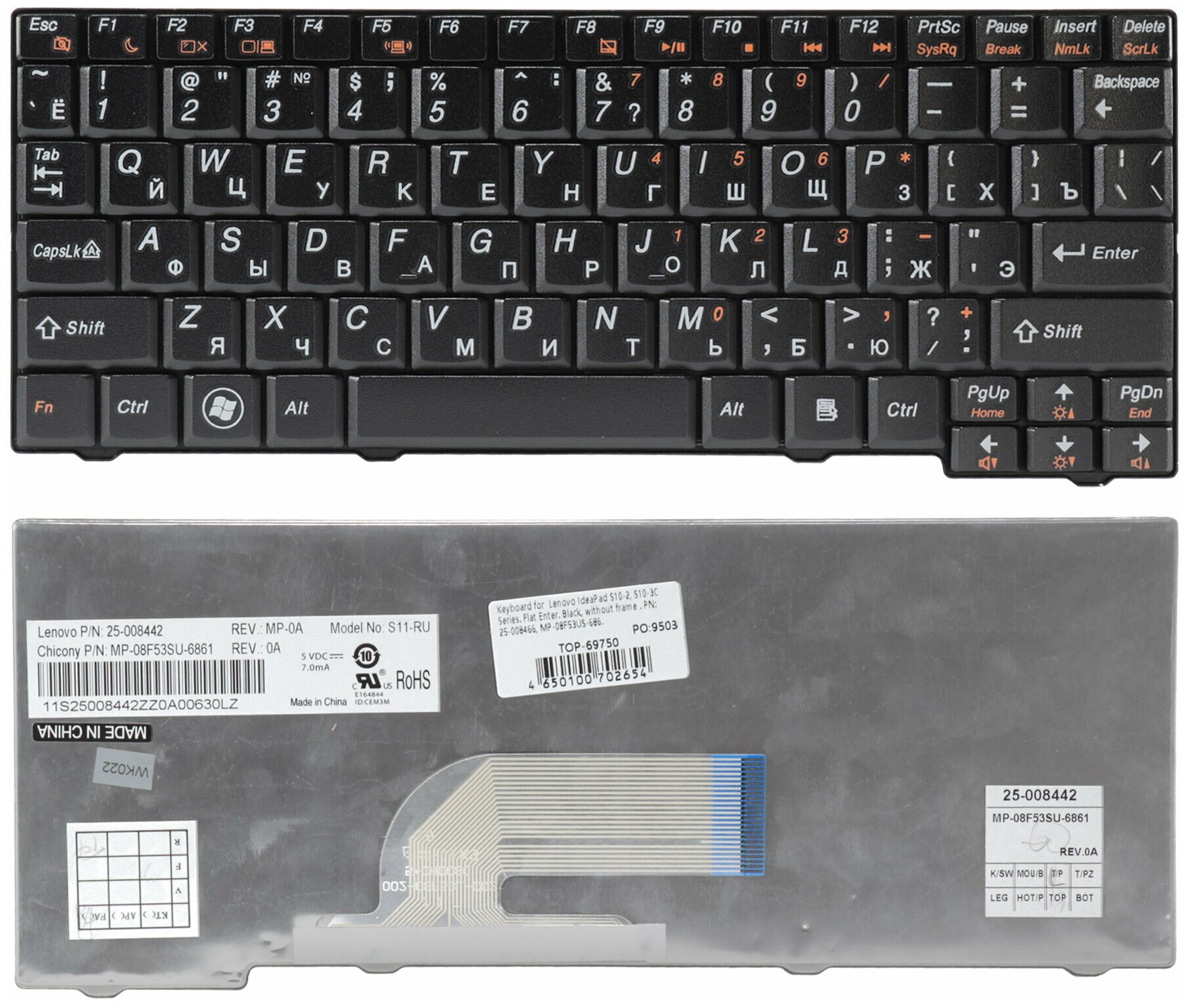 Клавиатура для ноутбука Lenovo IdeaPad S10-2, S10-3C, S11 (p/n: 42T4224, 42T4259, 8C9092)