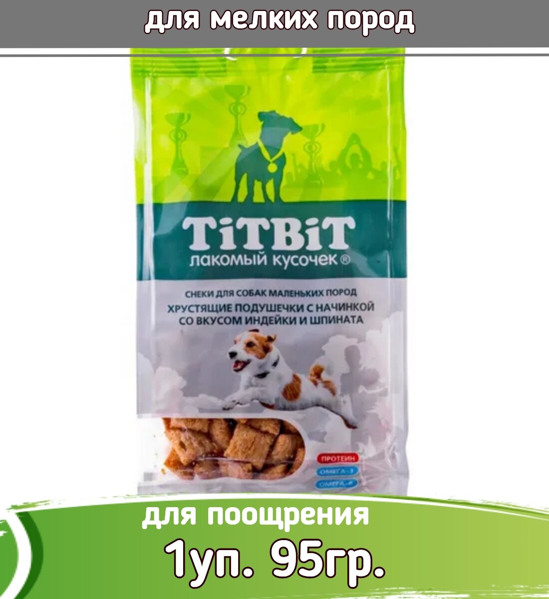 TiTBiT Хрустящие подушечки с начинкой со вкусом индейки и шпината для собак маленьких пород 95г 0.095 кг