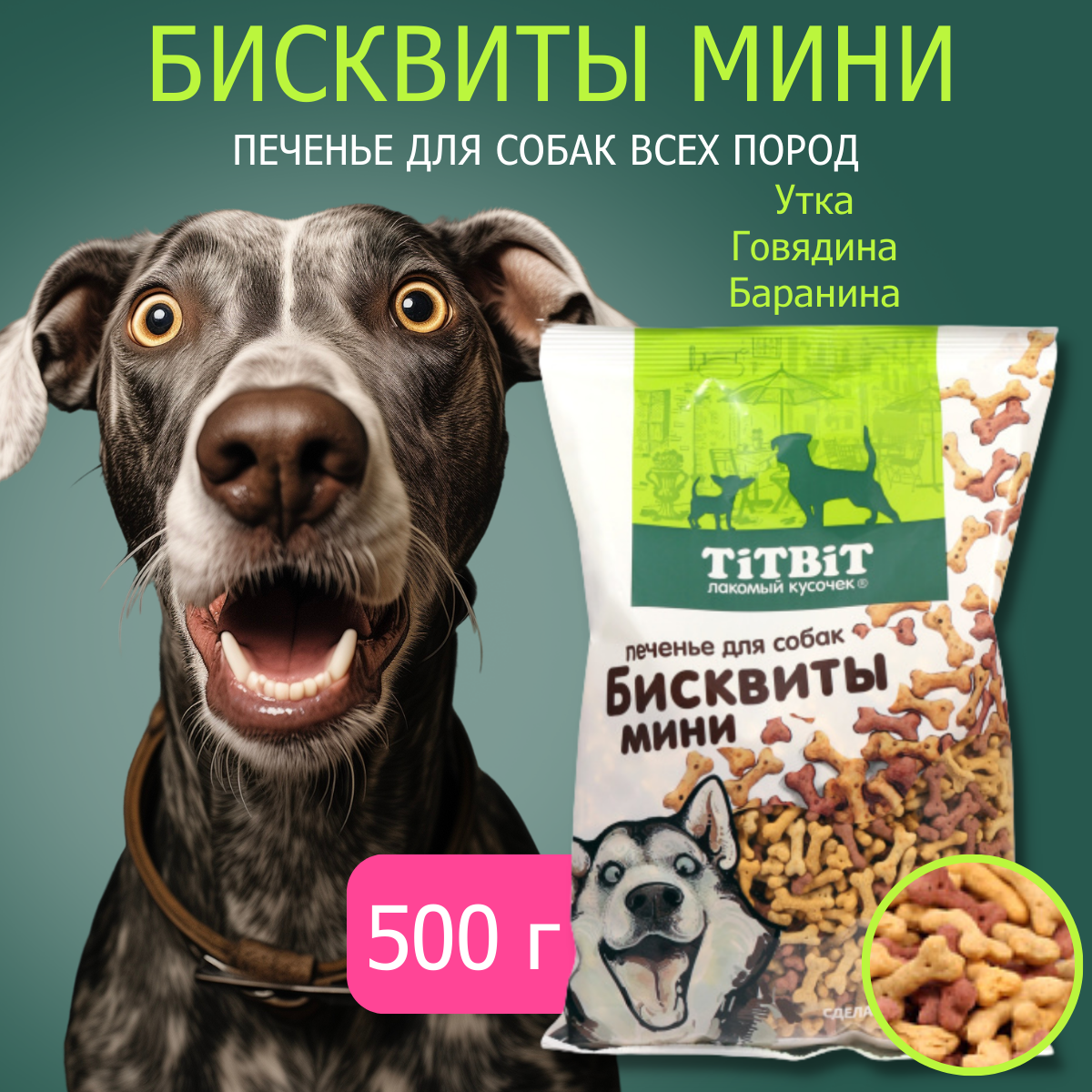 Лакомство для собак TiTBiT Бисквиты мясные мини, 500 г