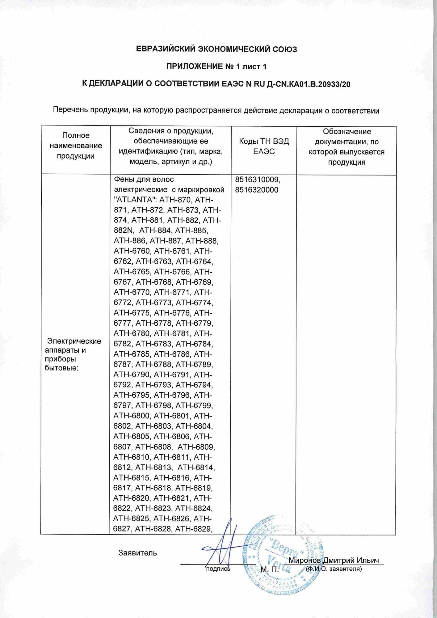 ATH-6787 (white) Фен электрический, Atlanta