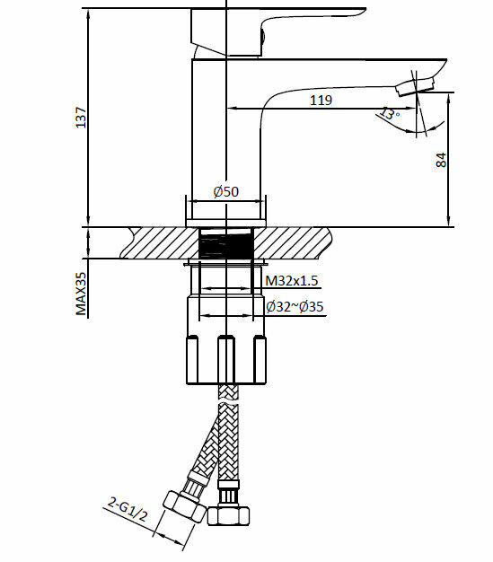| Длина излива | 119 мм |
