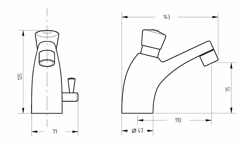 Смеситель порционный для раковины, период открытия затвора 5 сек 150 ml 0,5 bar (9007)
