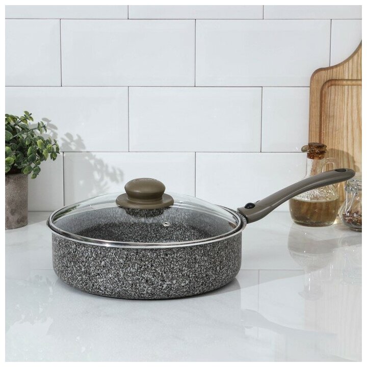 Сотейник Onyx, d=24 см, стеклянная крышка, съёмная ручка, антипригарное покрытие, цвет серый