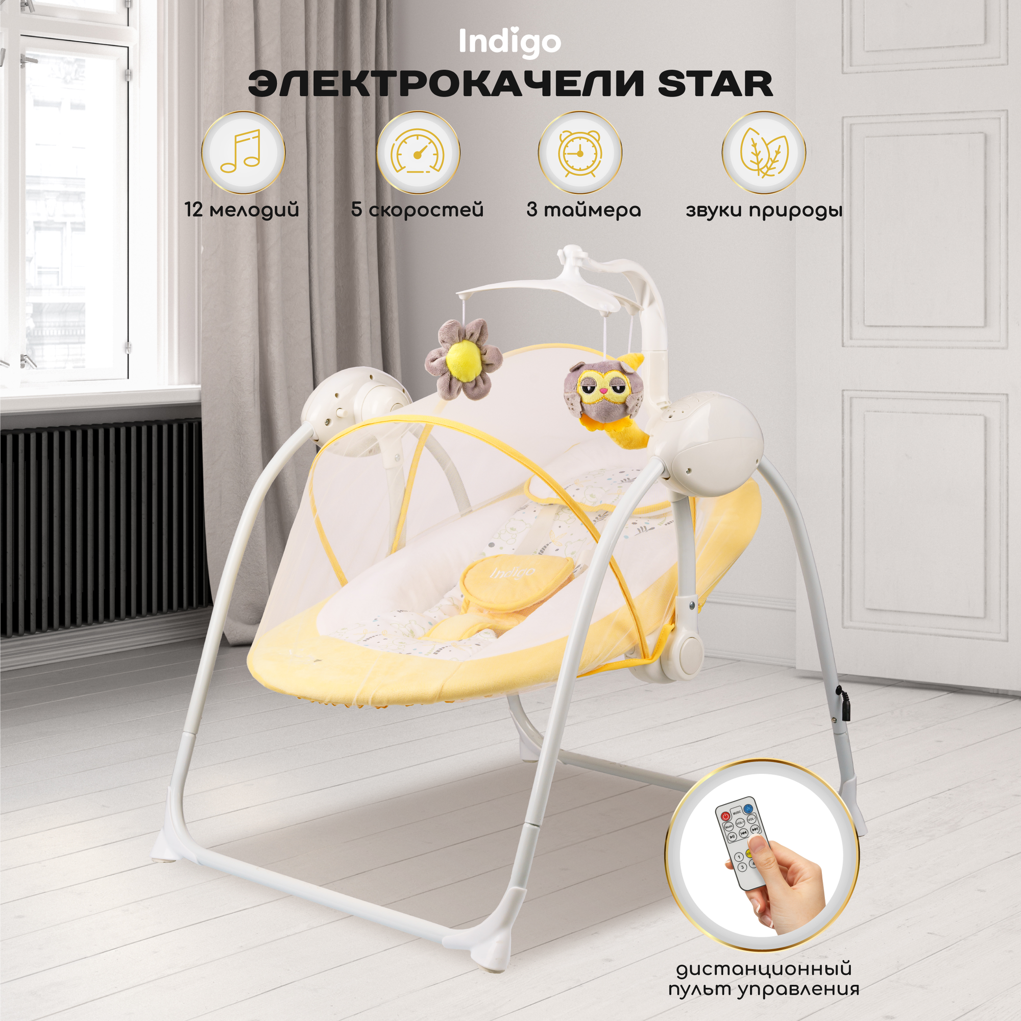 Электрокачели для новорожденных Indigo STAR с пультом управления, желтый