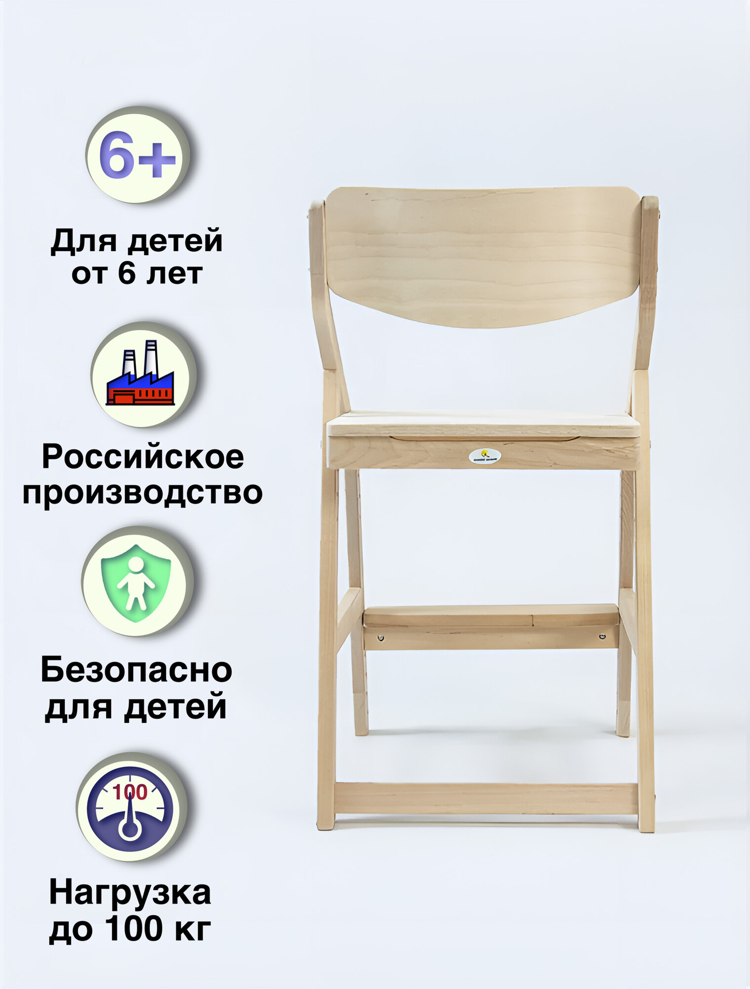 Стул детский регулируемый по высоте для школьника "Робин WOOD" натуральное дерево (ЛАК)