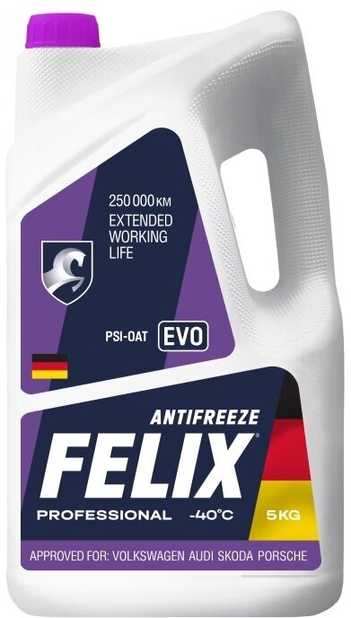 Антифриз FELIX "EVO" G12++, фиолетовый, -40С, 5 кг, для Volkswagen, Audi, Skoda, Porshe