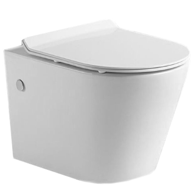 Унитаз подвесной CeramaLux B2330 безободковый, укороченный 36х48,5х34 см с сиденьем микролифт, белый глянцевый