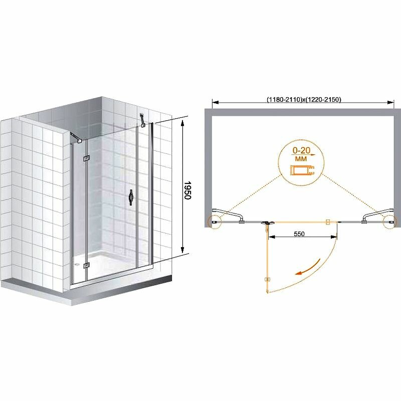 Душевая дверь Radaway Almatea DWJ 120 стекло прозрачное/профиль хром левая