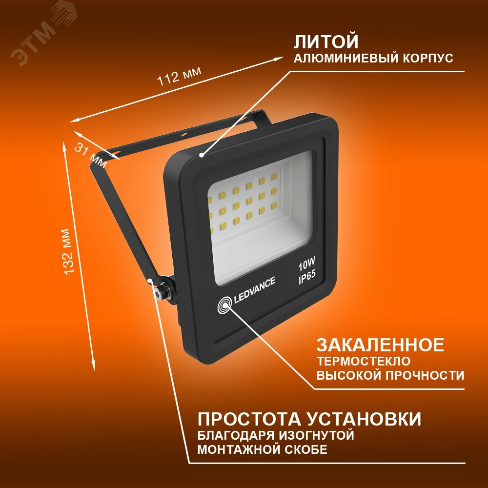 Прожектор светодиодный ДО-10Вт 6500К 900Лм IP65 LEDVANCE () OSRAM 4058075709232 (1 шт.)