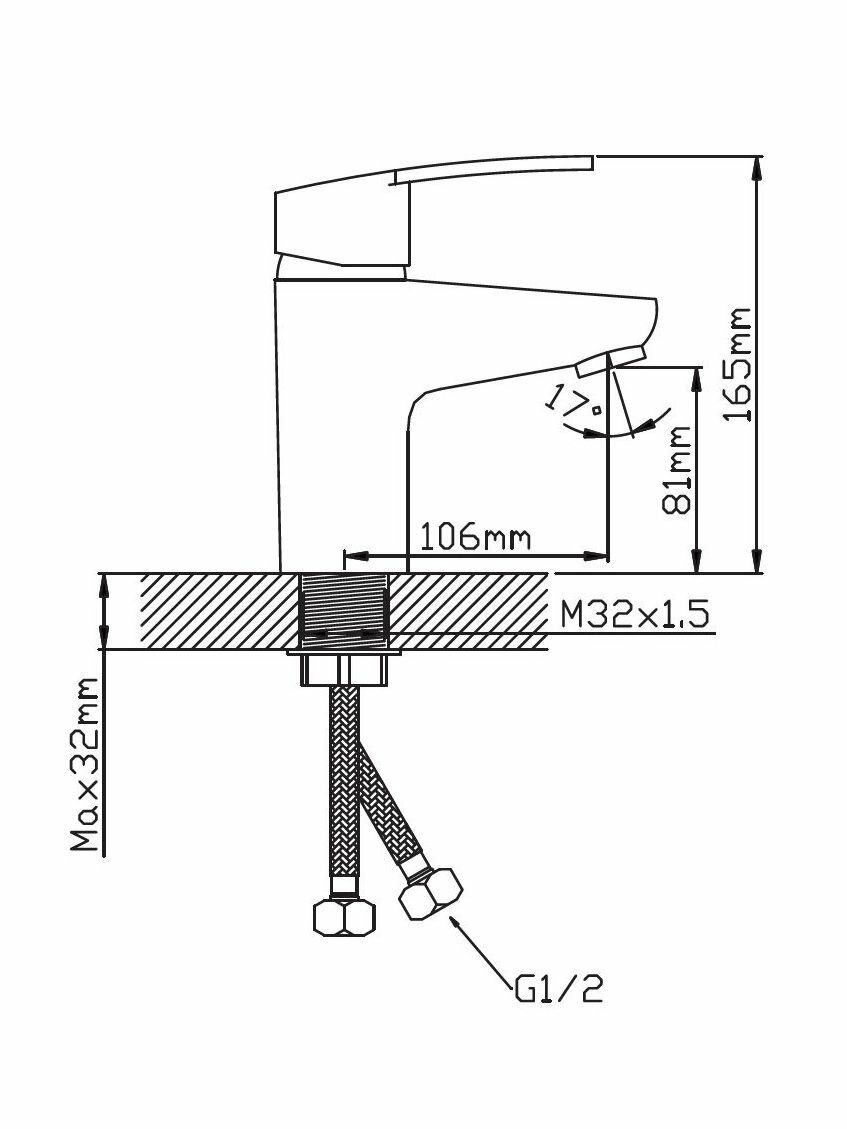 | Комплектация | смеситель, крепёж на гайке, две гибкие подводки 1/2" длиной 35 см, паспорт изделия |