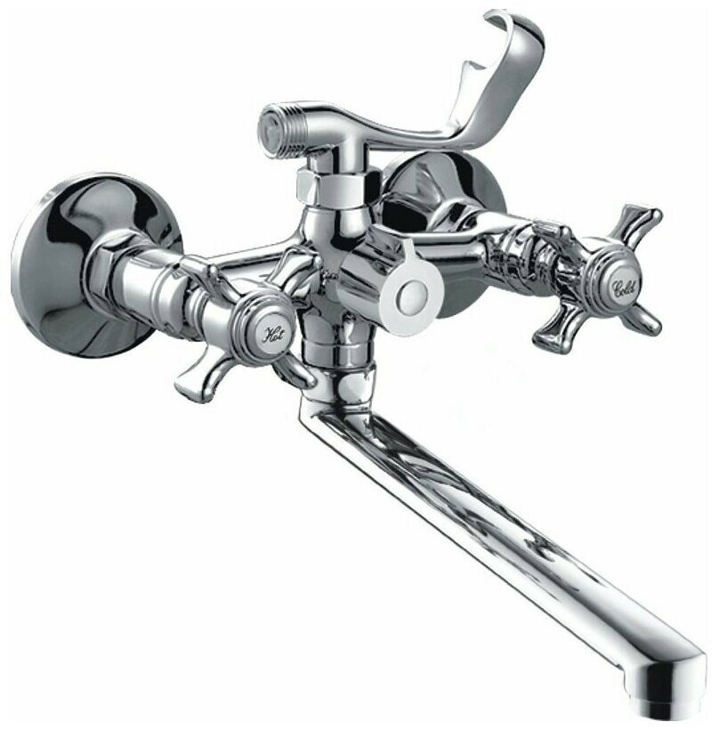 Смеситель для ванны и умывальника 1/2 кер CN2224 CRON L-излив 300мм, с душ. аксессуарами хром
