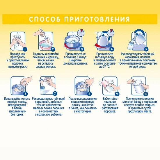 | Дополнительная информация | молочко следует готовить непосредственно перед кормлением; точно следуйте инструкции по приготовлению; оставшееся после кормления молочко не подлежит хранению и последующему использованию; до и после вскрытия продукт хранить при температуре не выше 25°C и относительной влажности воздуха не более 75%; содержимое банки должно быть использовано в течение 3-х недель после вскрытия, не рекомендуется хранить в холодильнике |