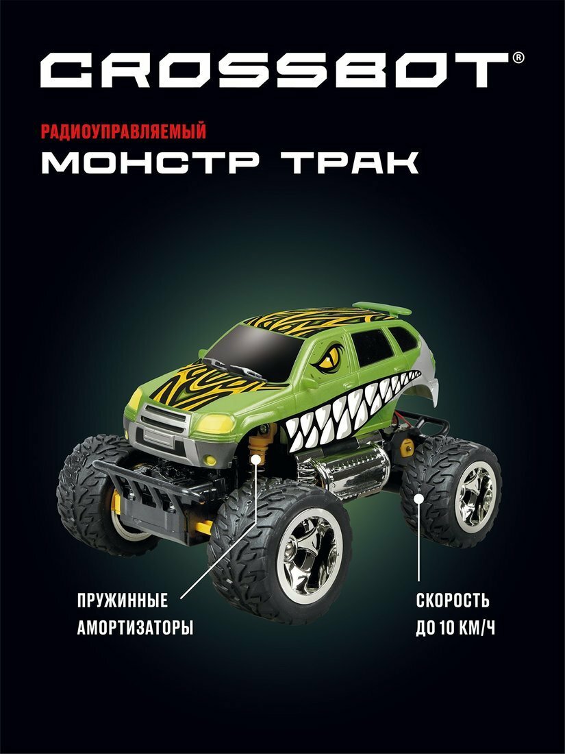 Джип радиоуправляемый Crossbot Монстр трак Динозавр, аккумулятор, зеленый (870609)