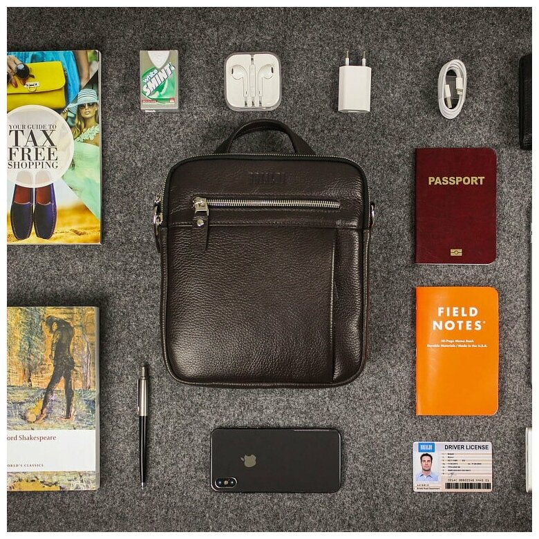 Мужская кожаная сумка через плечо BRIALDI Faro BR33396OM relief black