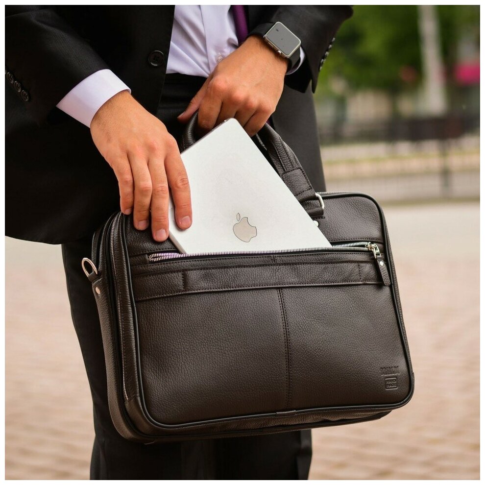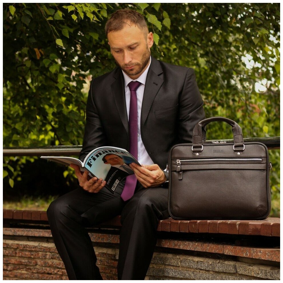 Сумка мужская деловая Brialdi Oxford relief brown (коричневая) для формата A4 или ноутбука 14 дюймов из натуральной кожи интересное: