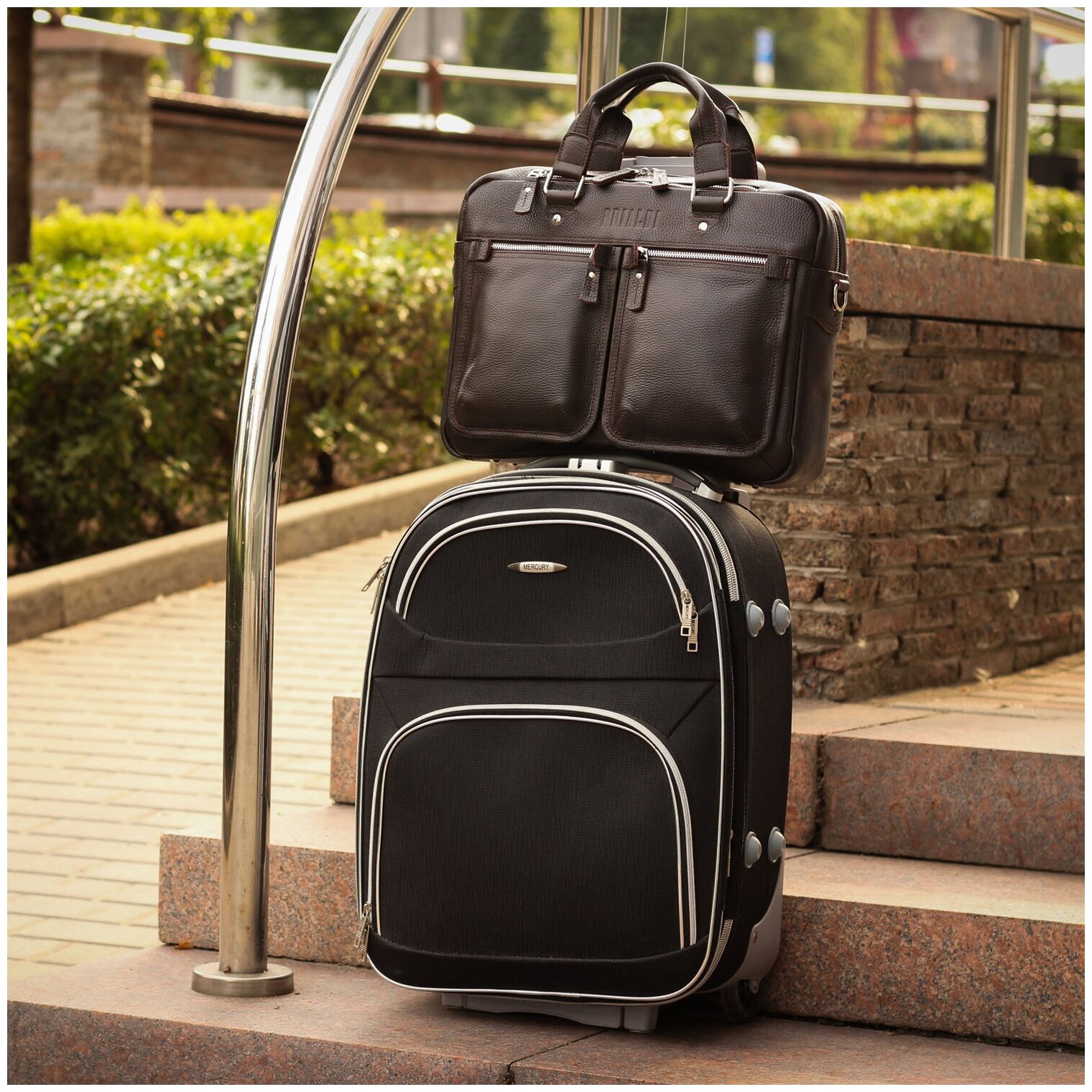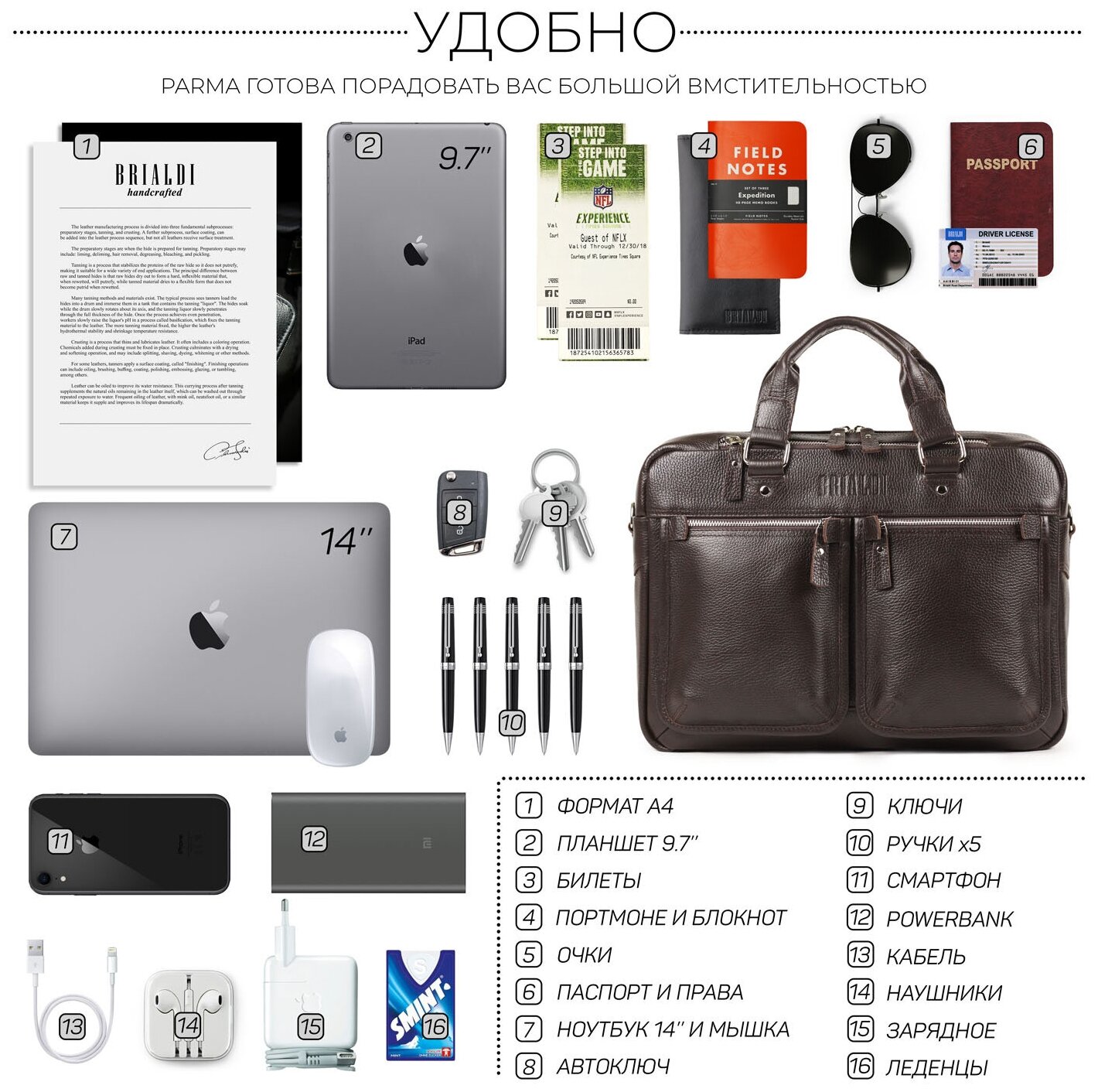 Сумка мужская деловая Brialdi Parma relief brown (коричневая) для формата A4 или ноутбука 14 дюймов из натуральной кожи