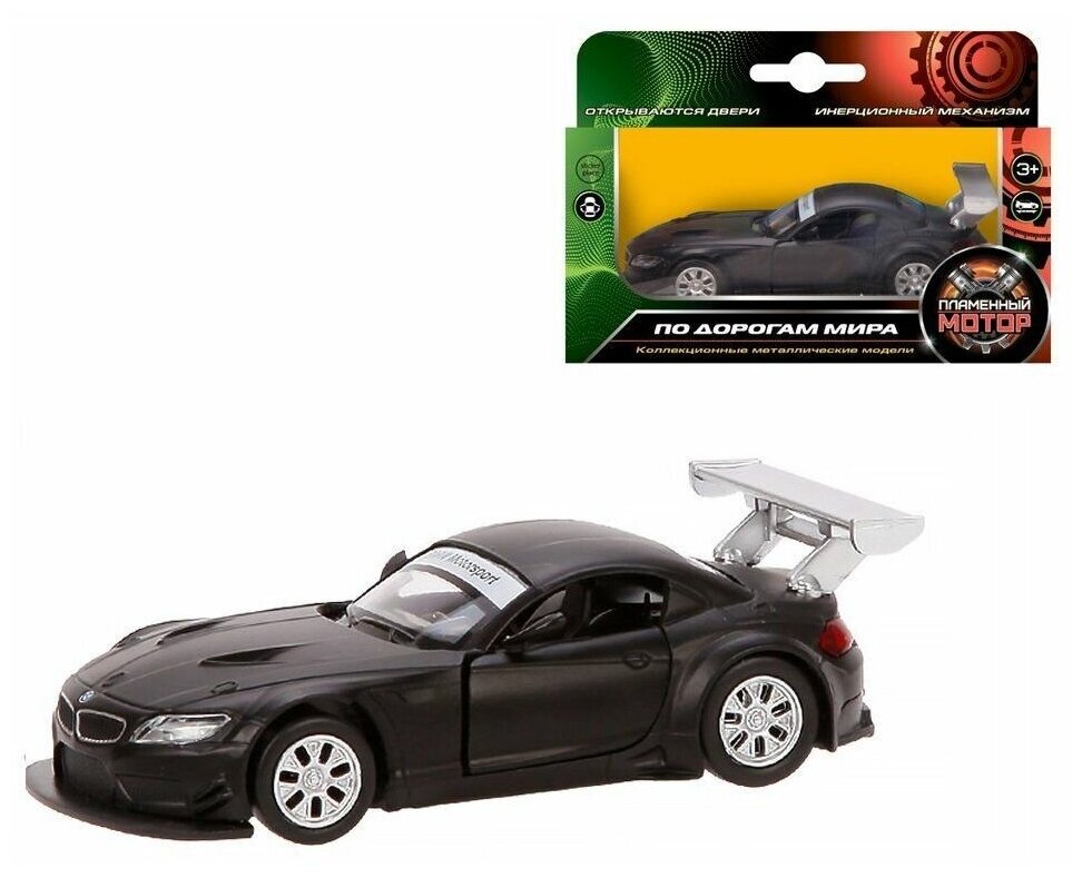 Купить Машина металлическая 1:38 BMW Z4 GT3, открывающиеся двери, 11см, черный матовый Пламенный мотор 870297