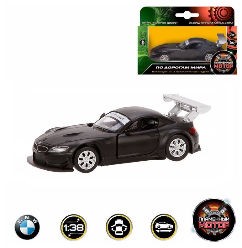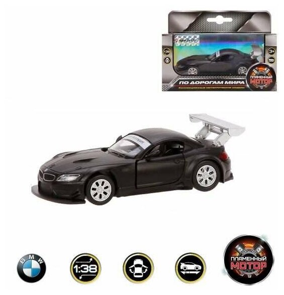 Машина Пламенный мотор металлическая, 1:38 BMW Z4 GT3, открываются двери, 10 см, черный матовый (870297)