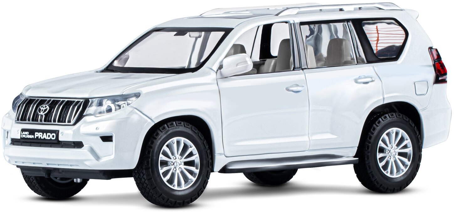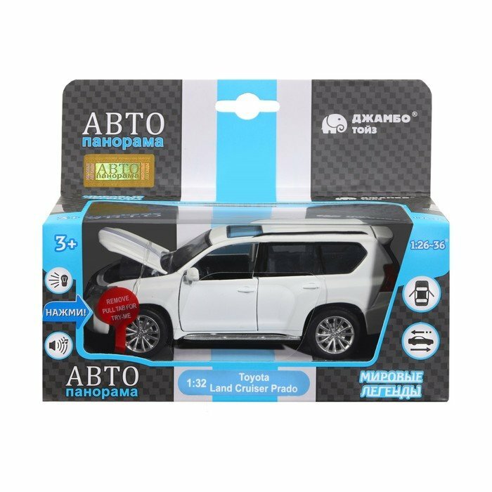 Машинка металлическая ТМ "Автопанорама", 1:32 Land Cruiser Prado, белый, инерция, свет, звук, открывающиеся двери