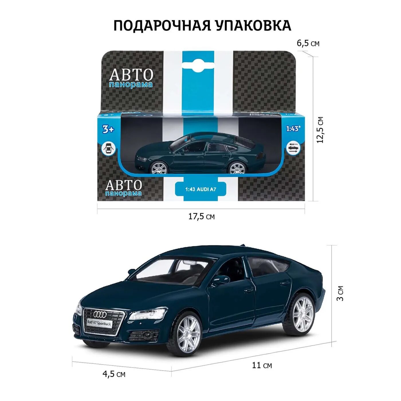 Купить ТМ "Автопанорама" Машинка металлическая 1:43 Audi A7, зеленый, откр. двери, инерция, в/к 17,5*12,5*6,5 см JB1251271