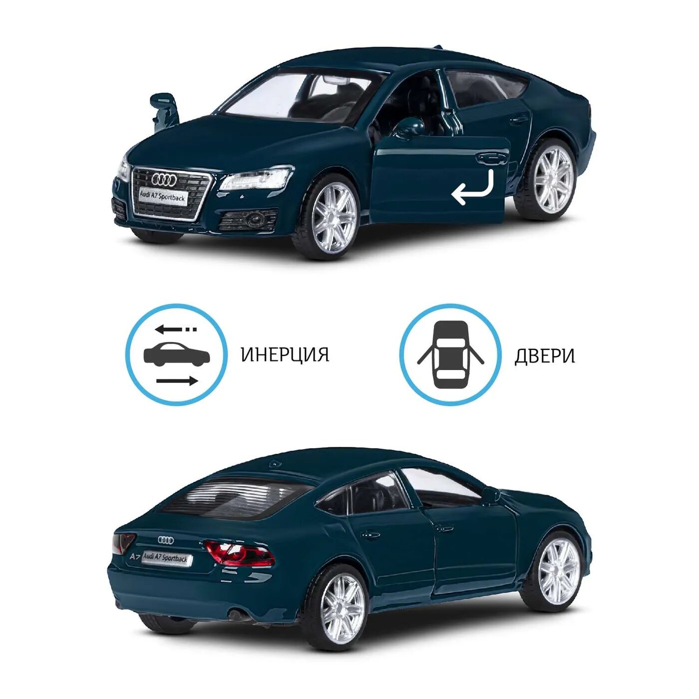 Машинка металлическая ТМ "Автопанорама" 1:43 Audi A7, зеленый, инерция, открывающиеся двери