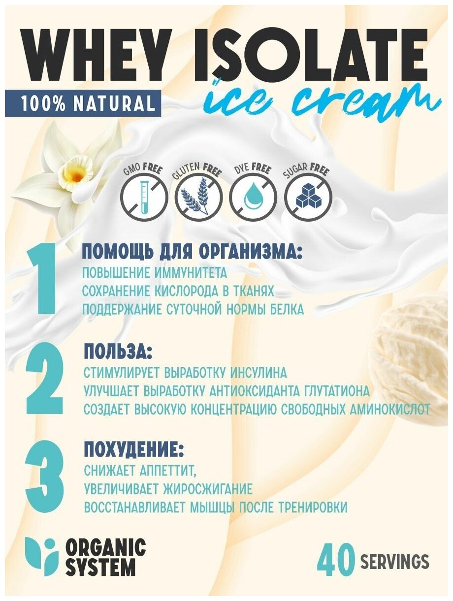 Купить Organic System Протеин изолят сывороточного белка со вкусом Пломбир 1000г