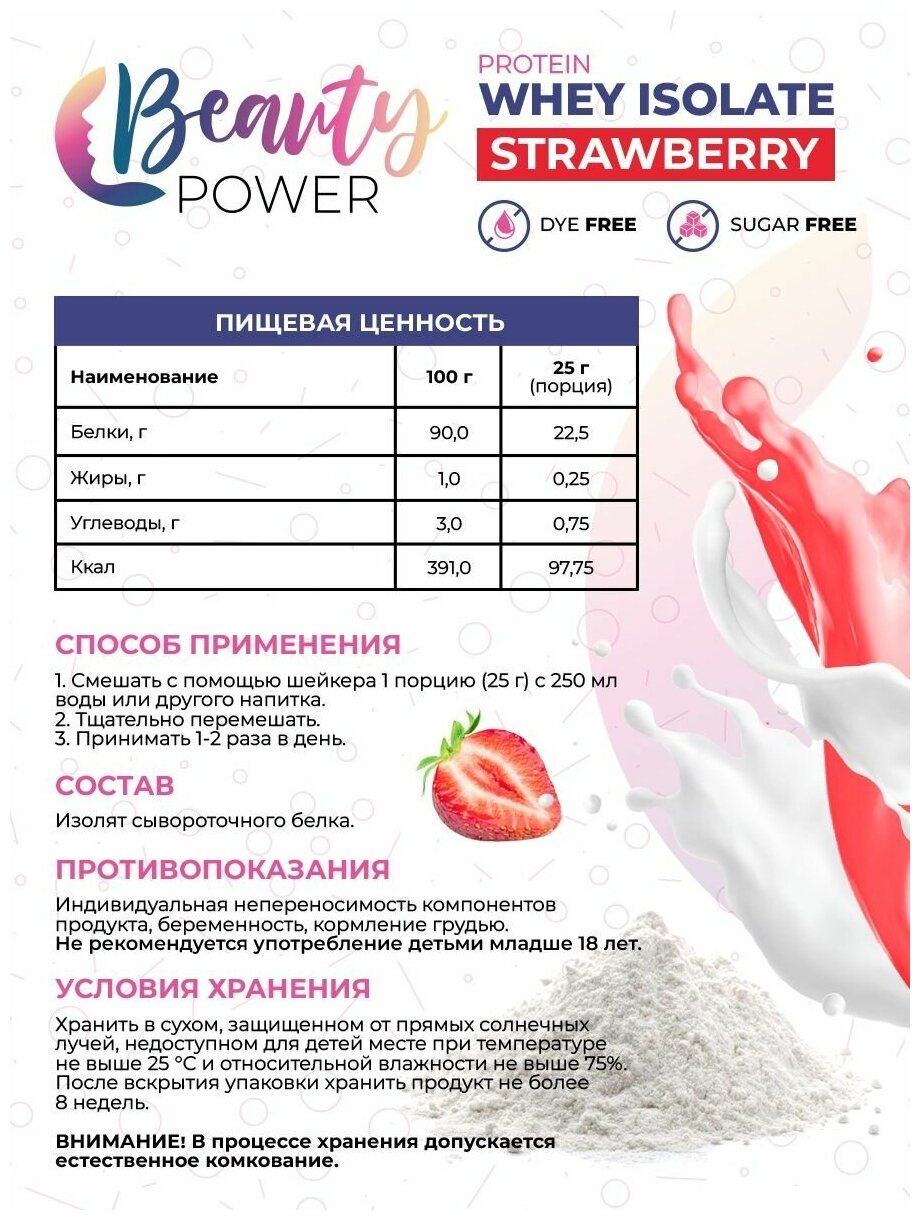 Beauty Power Протеин изолят сывороточного белка со вкусом Клубника 1000г интересное: