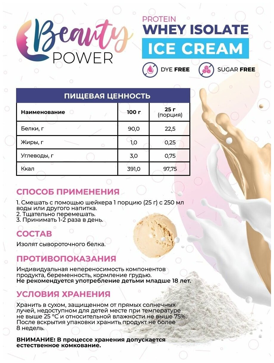 Beauty Power Протеин изолят сывороточного белка со вкусом Пломбир 1000г интересное: